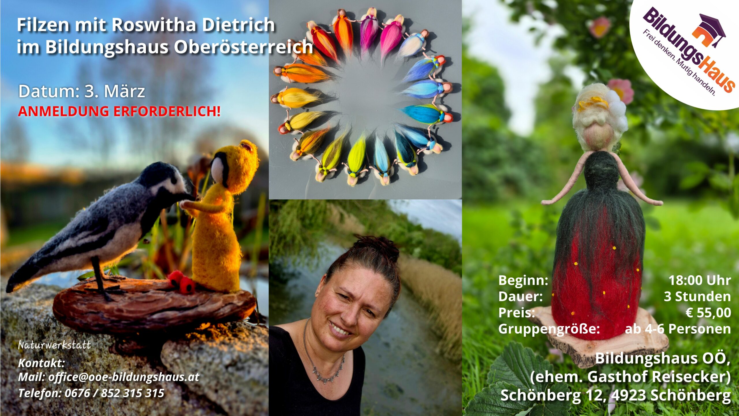 Filzen mit Roswitha Dietrich In diesem Kurs gestalten wir – passend zur Jahreszeit – liebevolle Figuren und kleine Szenen aus Wolle in Nadelfilztechnik. Das Filzen macht Freude, wirkt ausgleichend und beruhigt – ein wunderbarer Weg, zur Ruhe zu kommen und kreativ zu sein. Datum: 3. März 2026 Uhrzeit: 18:00 Uhr Ort: Bildungshaus Oberösterreich Schönberg 12, […]