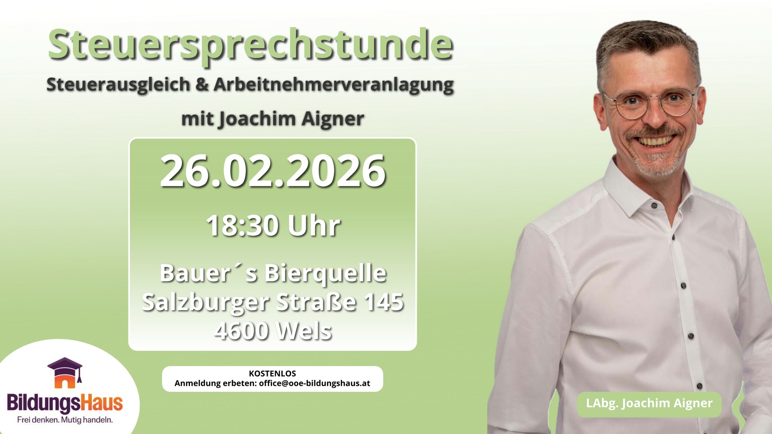 • Steuersprechstunde – Arbeitnehmerveranlagung und Steuerausgleich mit LAbg. Joachim Aigner
