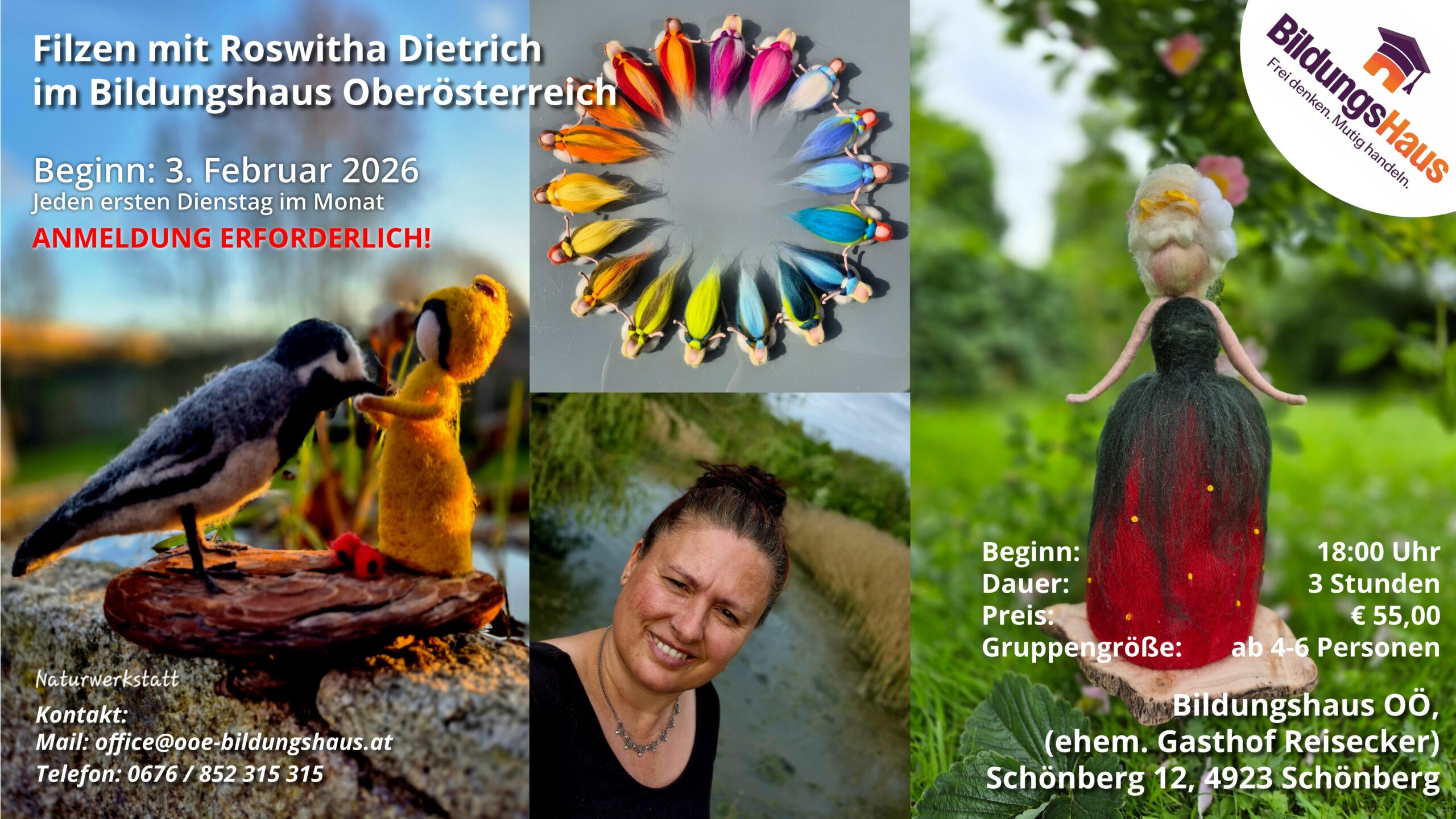 Filzen mit Roswitha Dietrich In diesem Kurs gestalten wir – passend zur Jahreszeit – liebevolle Figuren und kleine Szenen aus Wolle in Nadelfilztechnik. Das Filzen macht Freude, wirkt ausgleichend und beruhigt – ein wunderbarer Weg, zur Ruhe zu kommen und kreativ zu sein. Die Kurse starten am Dienstag, 3. Februar 2026 und finden danach jeden […]